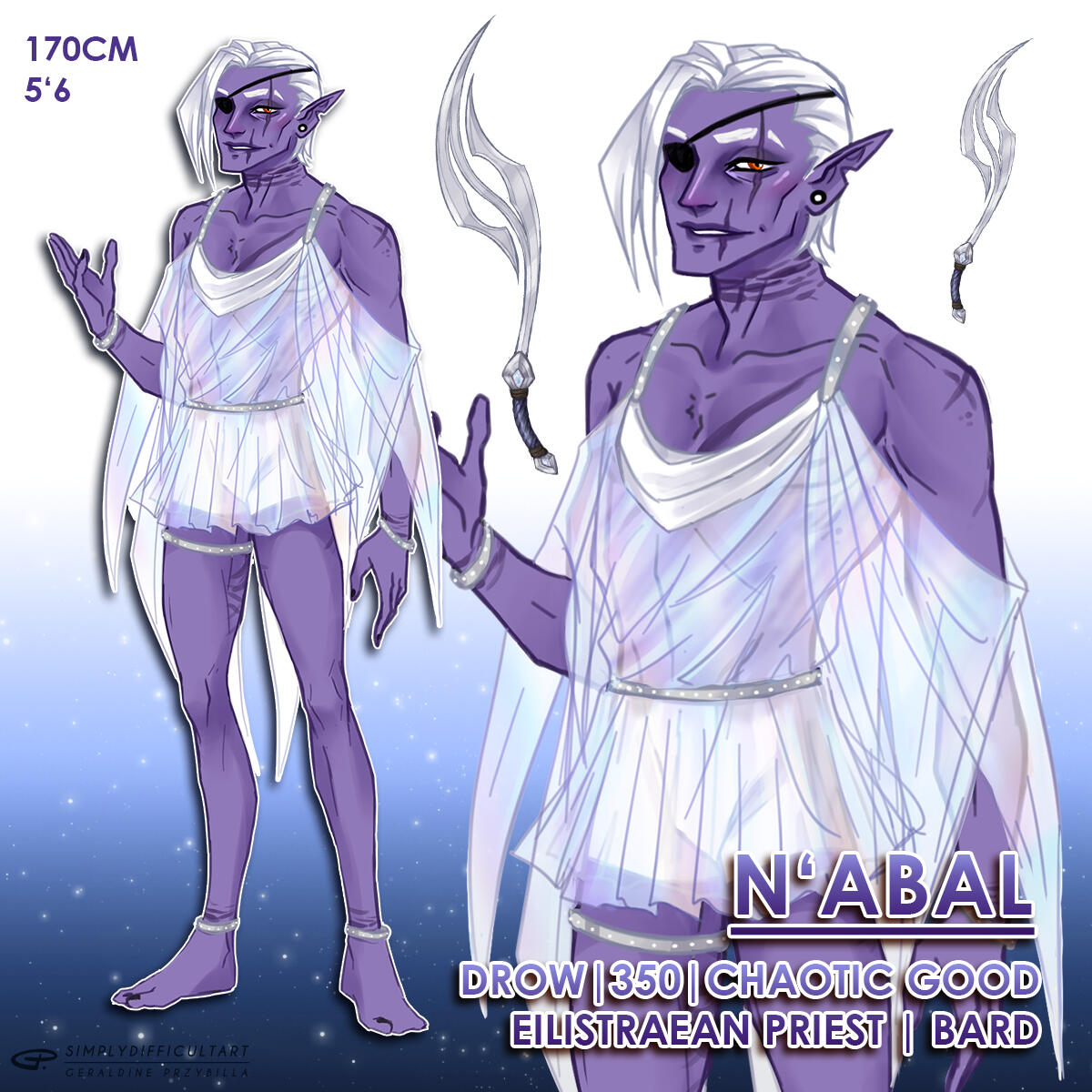 Her house and her powers were gone, what remained was the dagger at her hip and most of the blood in her veins. If she wanted to survive for a couple centuries more she needed to flee and regain Lolth's favor elsewhere. But to survive the next hour she needed shelter and a place to treat her wounds and rest first.☾⚬ ☾ ⚬ ☾⚬ ☾⚬ ☾N’abal sat quietly humming to himself when his sensitive senses picked up something and he stood up straight in alarm. The melody died in his throat, his heartbeat quickened and he tried to keep his breath steady.