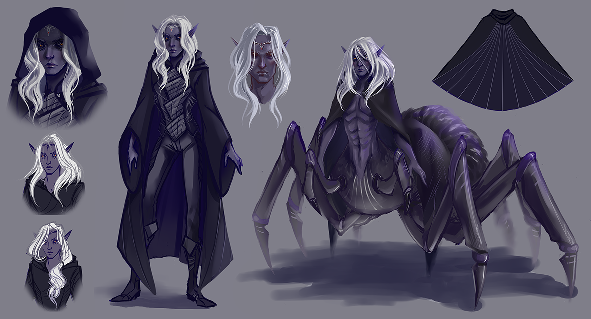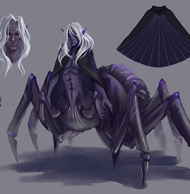 He was cast out of his house and cursed to live his days as a Drider, a transformation that does not only strip the subject of their magic but would also slowly turn them mad and transform their remaining drow upper body into a horrifically bloated form.